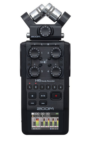 H6-BLK - Enregistreur 6 pistes portable à microphones interchangeables - 1x microphone XY amovible et 4x entrées XLR