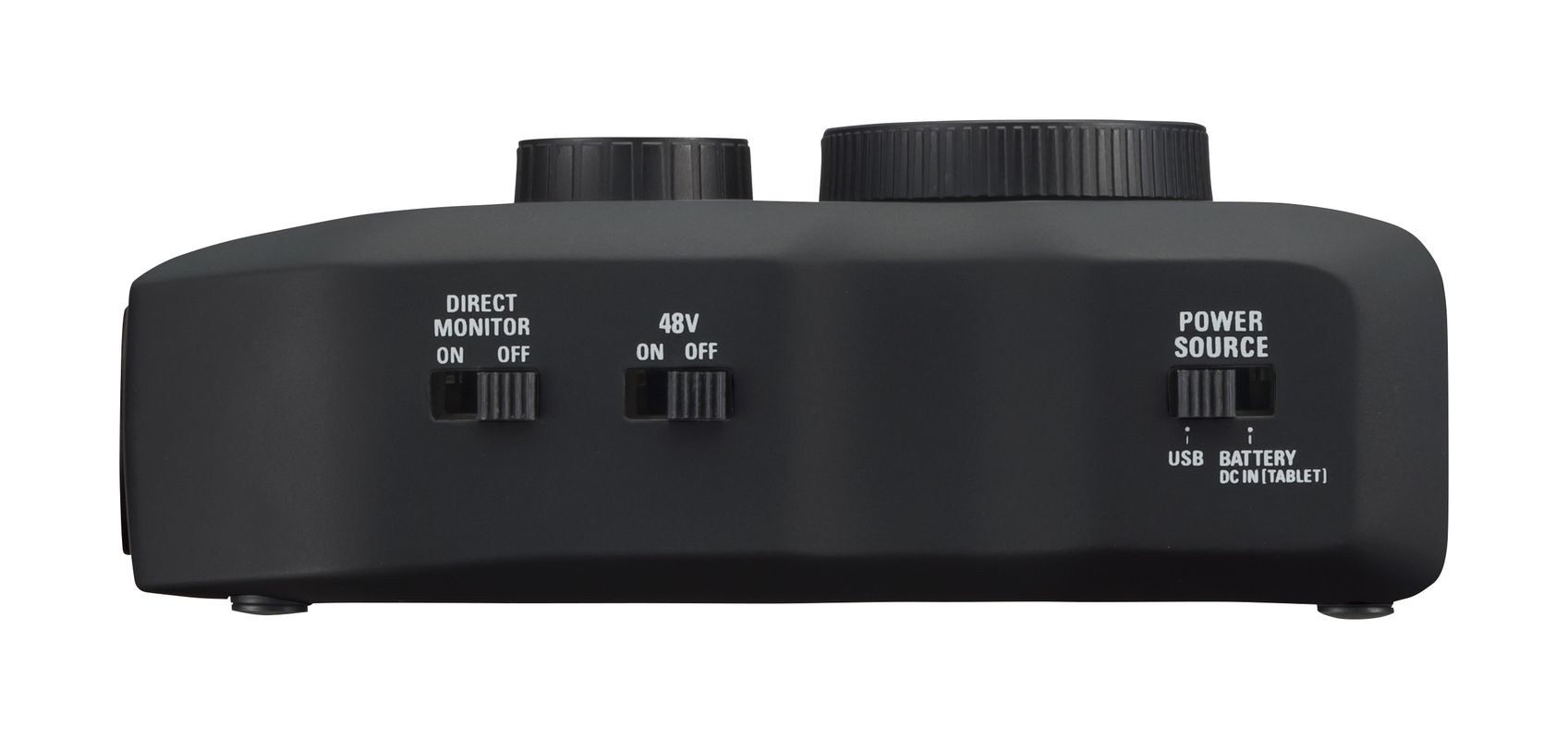 Autoalimenté sur port USB 2.0 - résolution 24 bits (44.1kHz, 48kHz, 88.2kHz, 96kHz) - 1x entrée XLR/Jack combo symétrique avec switch intrument Hi-Z - alimentation fantôme +48V - 2x sorties RCA - 1x sortie casque Jack 3,5mm - monitoring direct sans latence activable via interrupteur - compatible Windows 7 SP1 et superieur, MacOSX et iPad (via Camera Kit ou Lightning-USB non inclus) - entrée micro-B pour adaptateur secteur optionnel DC 5V/1A (AD-17) - fonctionne sur 2x piles AA - livré avec manuel utilisateur et câble USB - Logiciel Ableton Live Lite - Poids : 151g - Dimensions (mm) : 91,8 (L) x 119,2 (p) x 44,6 (h)